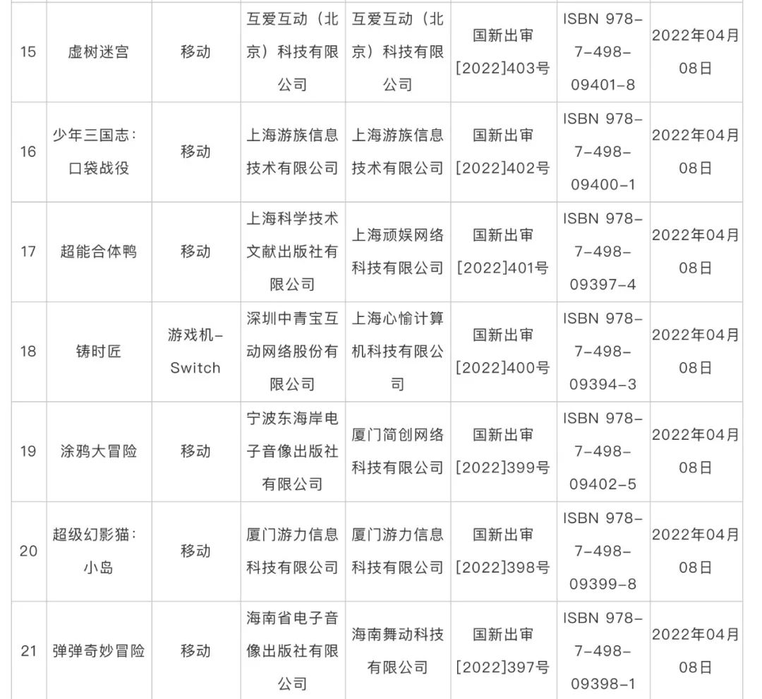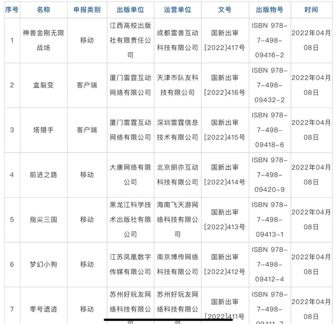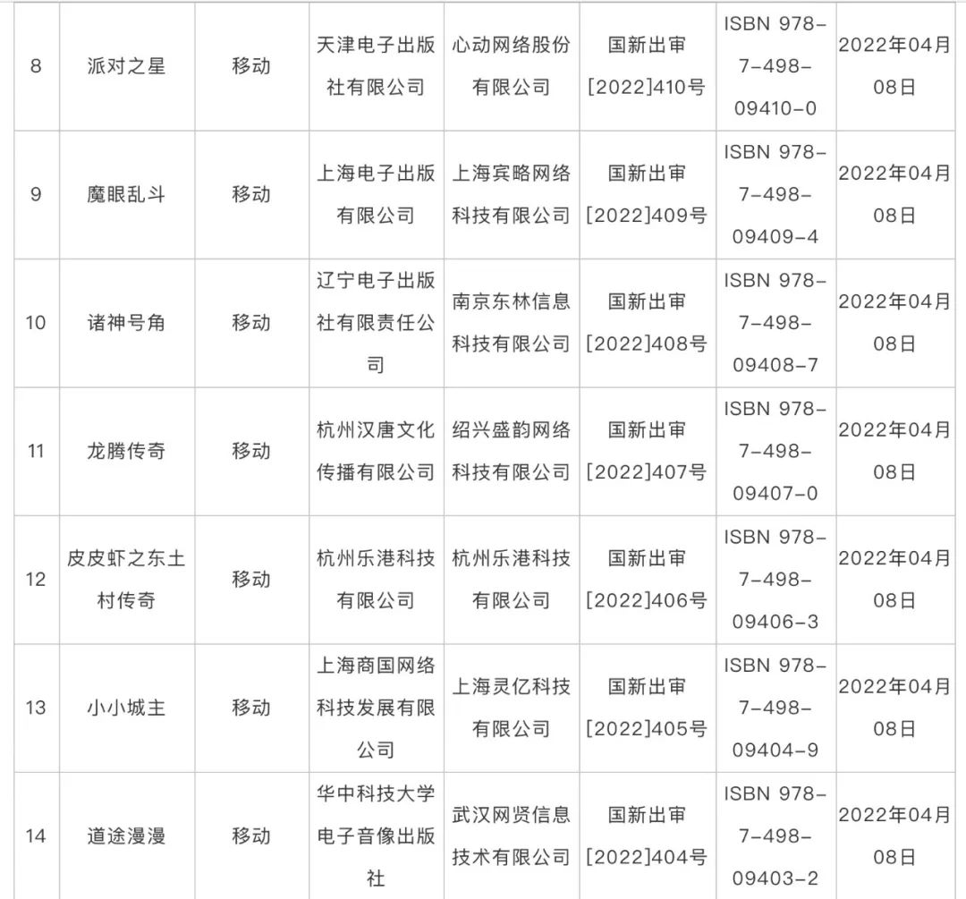 4月11日,国家新闻出版总署公布的信息显示,45款国产网络游戏于4月8日获批版号。这是自2021年7月22日之后,时隔260天,版署首次发放游戏版号。