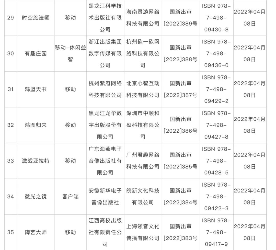 45款获批版号的国产游戏(整理自新闻出版总署官网)