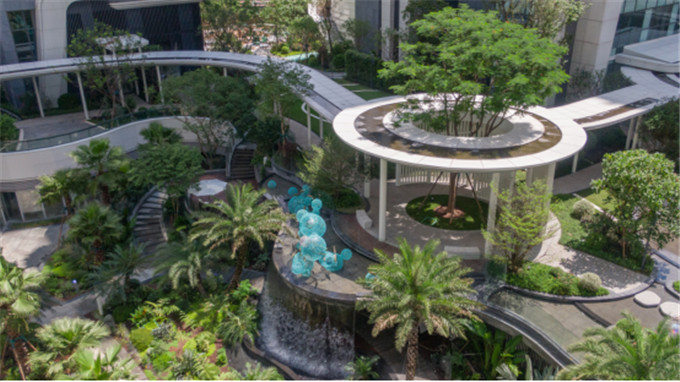 开拓了先有园林而后成筑,满分用心的社区营造观。匠心独造,不仅为开拓大隐于市的低调高格之景,也为不负白云山美好的资源。为了让每个住户回家恍如穿行于花园之旅,身心都能受到自然的洗涤,天奕精心打造目之及的每一处景观。从园区主入口的典雅大气,到园林内深藏一处瀑布之下的“热带雨林”,到住宅庭院处的下沉式绿谷,再到独创的10m挑高架空层,每一处都用心谱写。这个用心,可以是布局上别出心裁的引山林绿野、架庭嵌谷,也可以是精确到每一棵花草木的细致。