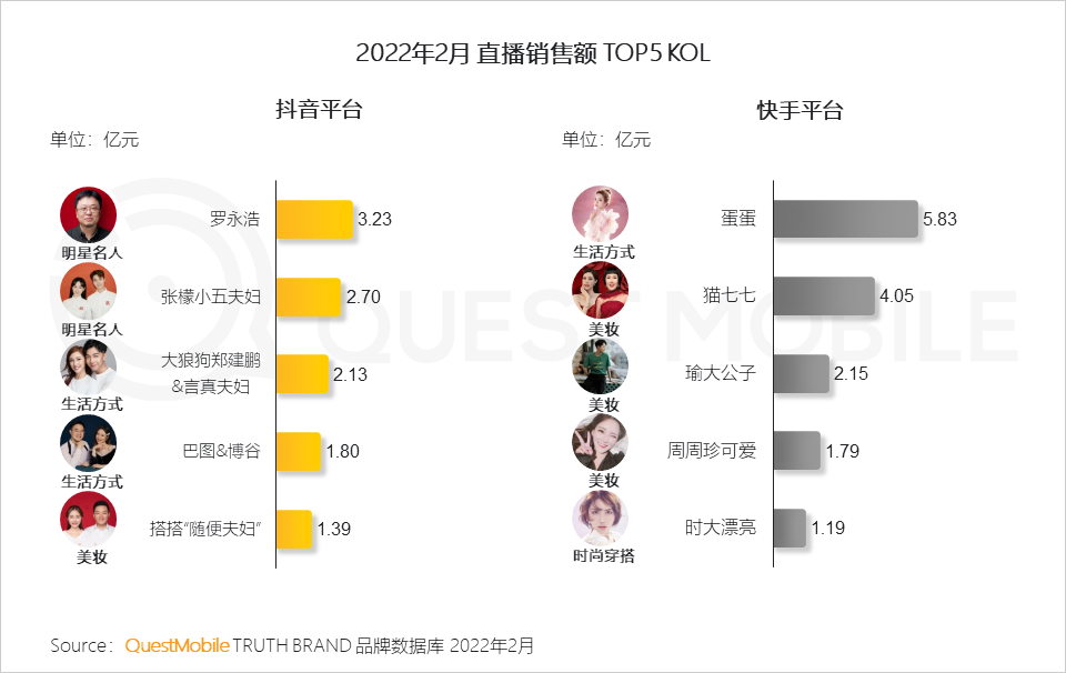 4、抖音上榜KOL中,“明星”&“夫妇”似乎是一个新的“销量密码”,其带货品类更多元化;反观快手上榜KOL“标签”,更聚焦于美妆