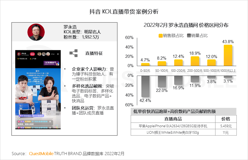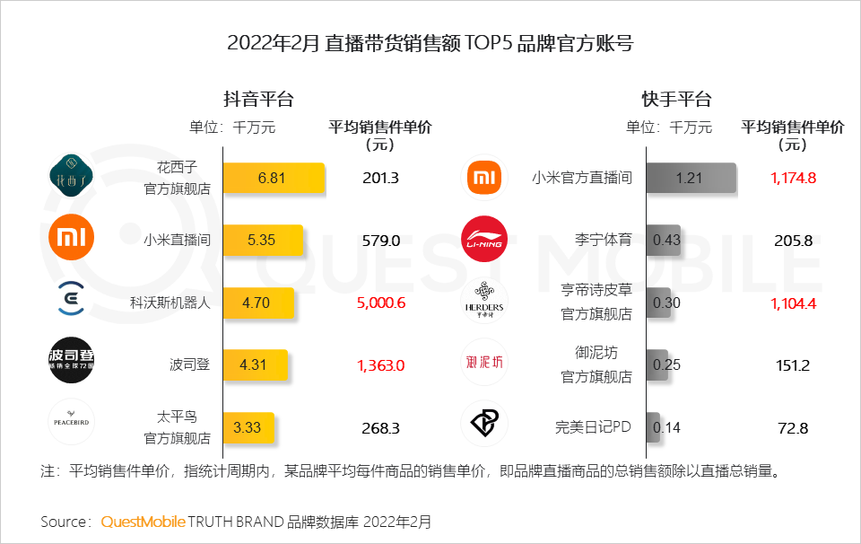 7、除达人直播带货外,品牌自播也逐渐崛起,部分知名品牌、高端品牌入场,通过常态化直播低成本可持续地形成品牌消费转化力