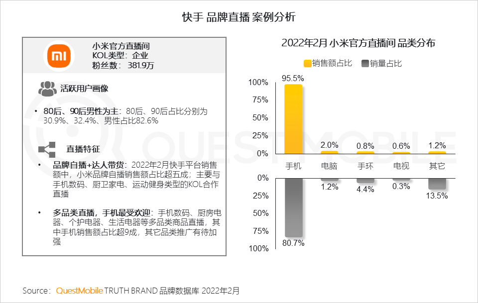 9、小米凭借自身品牌知名度吸引大量用户,通过官方直播间实现消费转化,推广品类丰富,手机带货效果最好