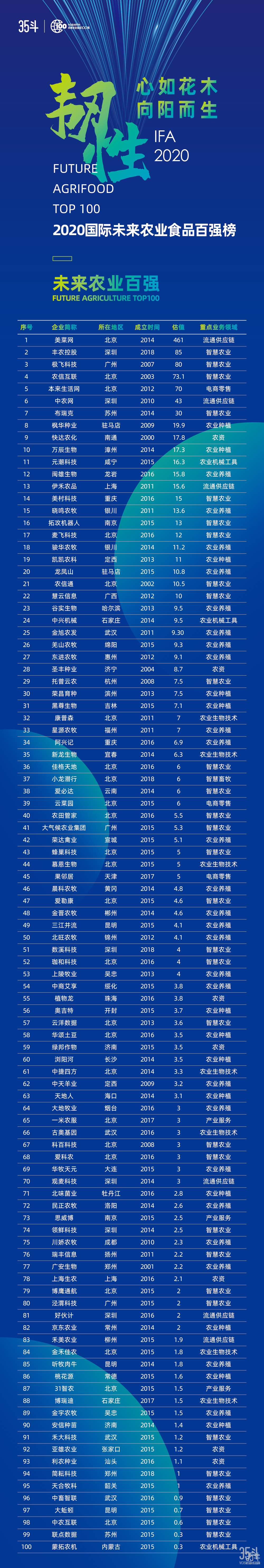 带着这样的疑问,我们开始了本文的写作。本文采纳的企业主要以35斗发布的“未来农业食品百强榜”上榜企业为基础,通过一对一问询和公开信息查询上榜企业核心创始团队的教育背景,来解答以上问题。