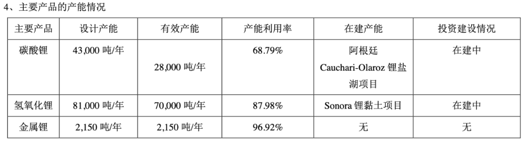不过,从赣锋锂业产能利用率来看,除了其金属锂产品的产能利用率基本跑满,碳酸锂、氢氧化锂产品的有效产能仍有上升空间。