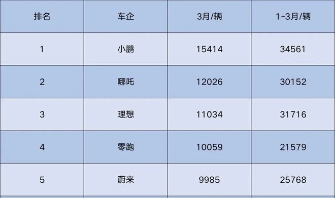 今年3月,蔚来汽车交付量达到了9985台,增速为37.6%,不仅今年以来交付量连续三个月不过万,而且已经被首次破万的零跑汽车超过,成为国产造车新势力第五名。