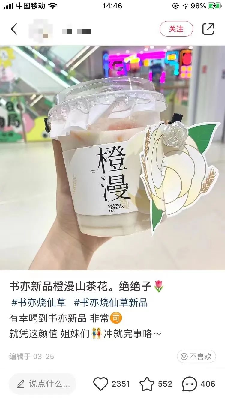 “书亦新品橙漫山茶花太好喝啦!颜值也是巅峰,好想要小夹子。”