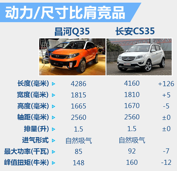 动力方面,昌河Q35有望搭载与Q25相同的1.5升自然吸气发动机,最大功率为85千瓦,峰值扭矩达到148牛米,动力参数足以比肩长安CS35。传动系统,与这台发动机匹配的有望是5速手动变速箱或4速自动变速箱。