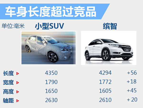 2015年国内SUV产销增速分别为49.7%和52.4%,增速远超乘用车总体水平。在竞争激烈的小型SUV细分市场中,广汽本田缤智2015年全年累计销量126,838辆,在这一市场处于前列。现款缤智车身尺寸为4294*1772*1605毫米,轴距为2610毫米。通过数据对比可知,,东风风度小型SUV车身长度比广汽本田缤智多56毫米,车内空间有望更加宽敞。