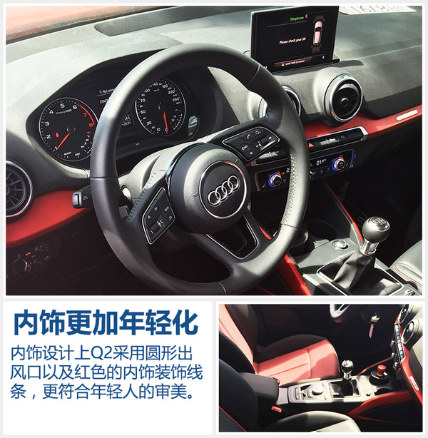 在内饰设计方面,奥迪Q2保留了标志性的设计风格,三幅式方向盘以及仪表盘均有着浓厚的家族式风格。而圆形的出风口则凸显了年轻化的趋势,同时车辆在中控台的位置也非常简洁,并未使用占用过多的空间,同时中控台红色的装饰条,让车辆看上去更加年轻。此外,从此次曝光的图片可以看出,车辆是一款手动挡车型,新车售价预计在20万元左右。