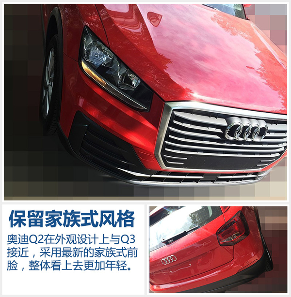 外观方面,奥迪整体设计风格将延续家族化造型,与现款Q3相比,奥迪Q2的整体造型更偏向跨界风格。前脸部分的六边形进气格栅与下雾灯部分的面进一步扩大,突出Q2年轻运动的特点。同时,新车还配备了LED大灯,整体设计风格相比奥迪Q3更加年轻化与运动化。