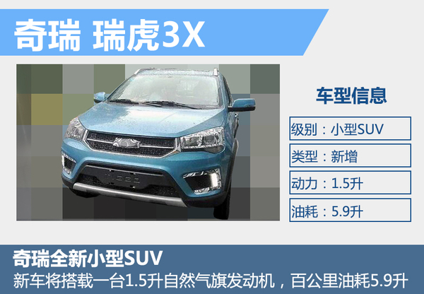 如今奇瑞在小型SUV产品领域已经投放了瑞虎3车型,瑞虎3X上市后,奇瑞将在这一领域拥有两款车型,更加全面地覆盖小型SUV市场。此外,奇瑞还有望打造两款全新SUV车型,一款定位高于紧凑级SUV—瑞虎5,另一款定位低于瑞虎3X。届时瑞虎家族将扩充至5款车型,奇瑞汽车的综合竞争力也将得到进一步提升。
