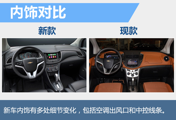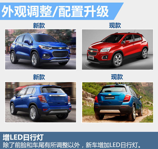 新车采用了雪佛兰家族式的经典双层进气格栅设计,前大灯造型相比老款车型变得更为犀利,酷似全新科迈罗,此外新车大灯组加入了LED光源,让新车更具年轻化和运动感。从侧面看基本沿用上一代造型,但线条更加丰富。新款创酷车尾中央位置新增一条镀铬装饰条,尾灯也采用更具层次感的双环形叠加设计,相比新款车型更加硬朗和时尚。