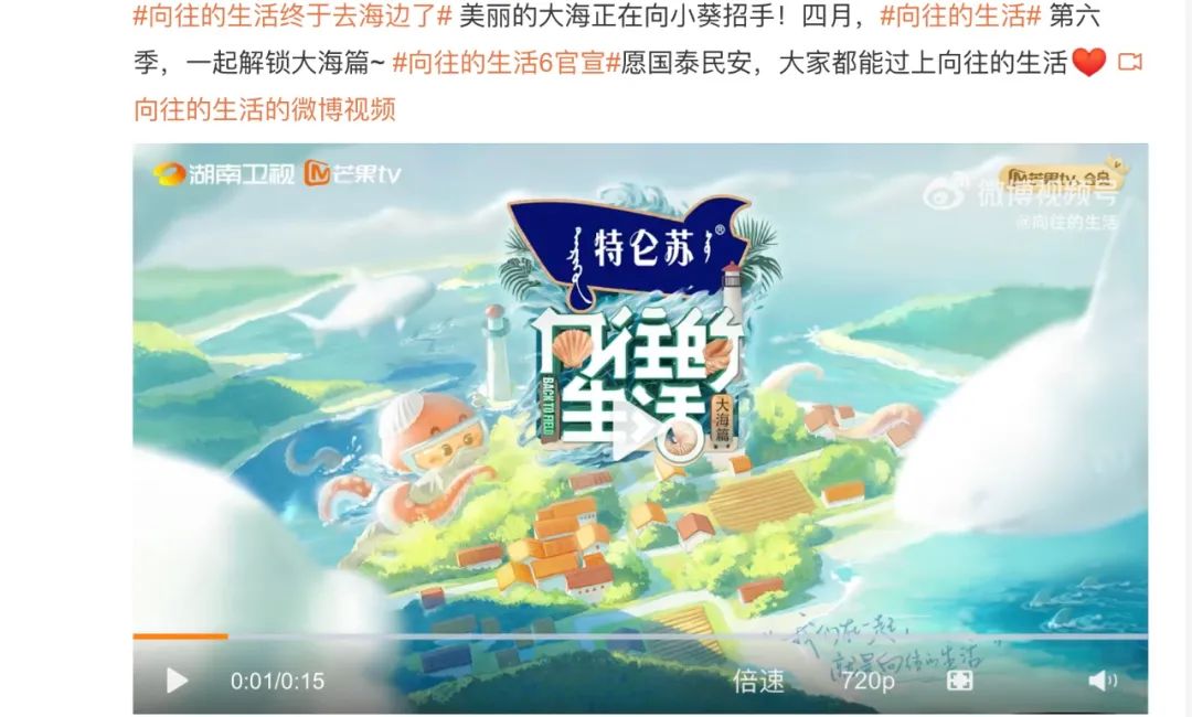 由于摆脱了山水间归园田居的场景限制,去往碧海蓝天的《向往6》可能在节目调性上会更加“入世”,这有助于品牌赞助更自然地融入节目,特别若与海产品有关的品牌合作,亦不会太过破坏主线观感。