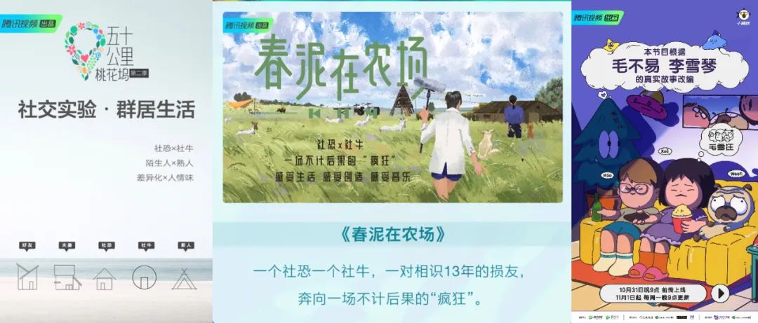 慢综艺想吸引更多受众,做类型元素的融合也是条可行的路子。腾讯视频今年待上马的《春泥在农场》,打出社交实验+户外访谈+音乐汇演的卖点,很像是《奇遇人生》+《五十公里桃花坞》+《毛雪汪》的融合态,令人期待。