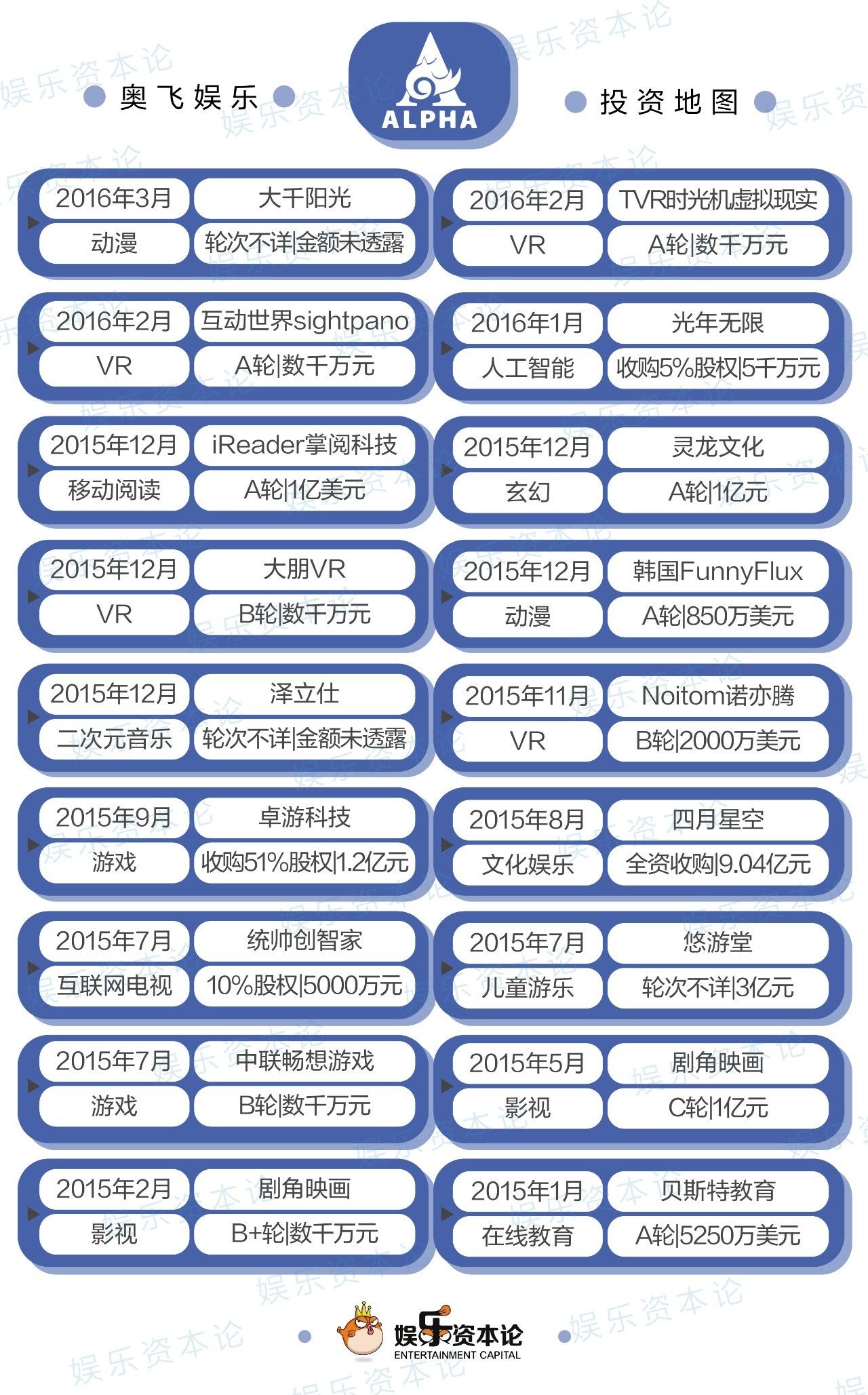 过去这一年多时间,是奥飞在影视行业大肆布局和扩张的阶段,不仅投资多家文娱公司和20多部电影项目,还把公司名称由奥飞动漫改为奥飞娱乐。