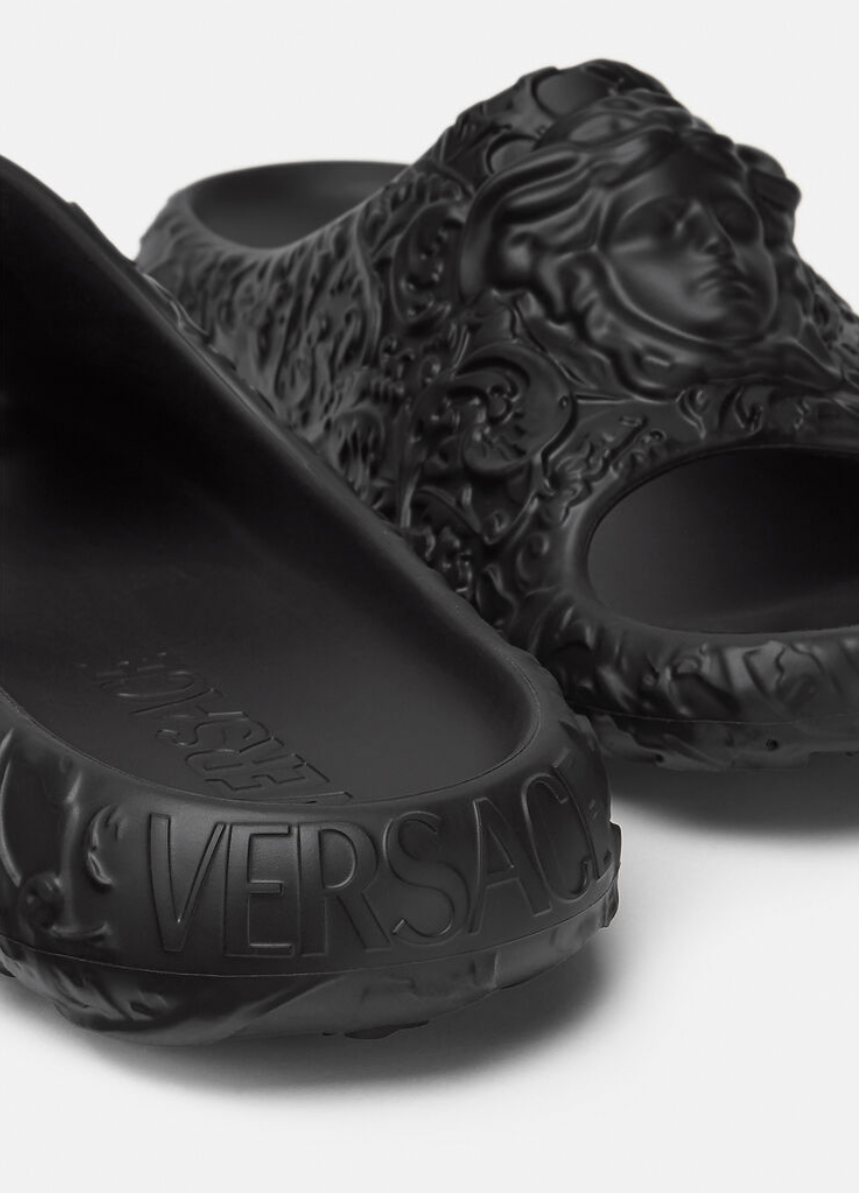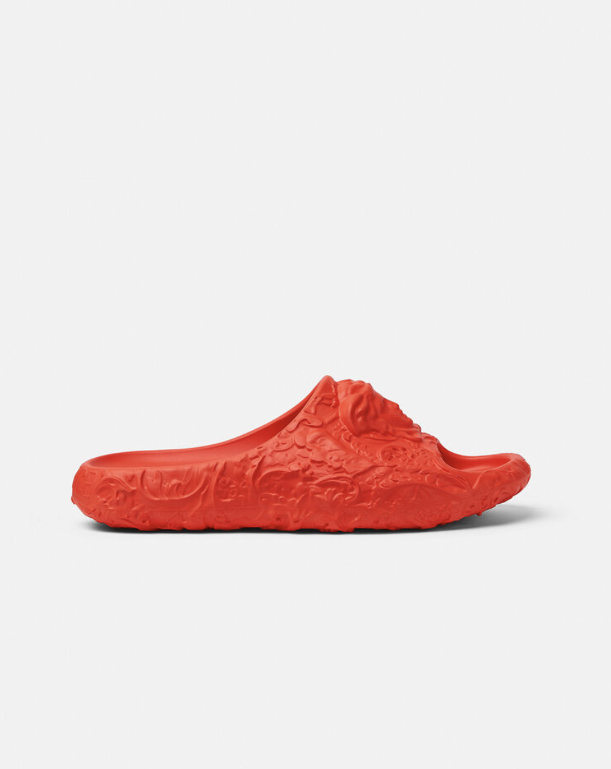 持续上升的温度,人们纷纷翻出短袖T恤,短裤短裙一秒入夏。拖鞋大军也加入凉爽阵营,各大品牌相继推出各类款式的拖鞋。作为最能象征夏日氛围的凉拖在挑选入手款式上自然不能马虎,其中Versace范思哲推出的“Medusa Dimension”橡胶拖鞋以其别样醒目的纹饰在众多款式中脱颖而出,立体的品牌logo美杜莎Medusa与缤纷色调共同塑造时尚凉拖系列。