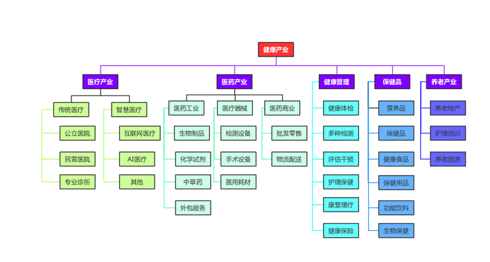 可以肯定的是,一般健康领域是一个综合性很强、交叉性很强的行业,在各个细分行业中有许多分支是从“医学”和“药学”发展而来的。行业相对传统的领域包括医疗器械、制药制造和医疗服务,它们保持了该行业的绝大多数市场份额;从产业领域来看,近年来,随着科学技术、数字化和互联网的发展,出现了更加智能化、数字化和高端的产业板块,包括精准医疗、医疗大数据、互联网医疗和消费者健康服务。