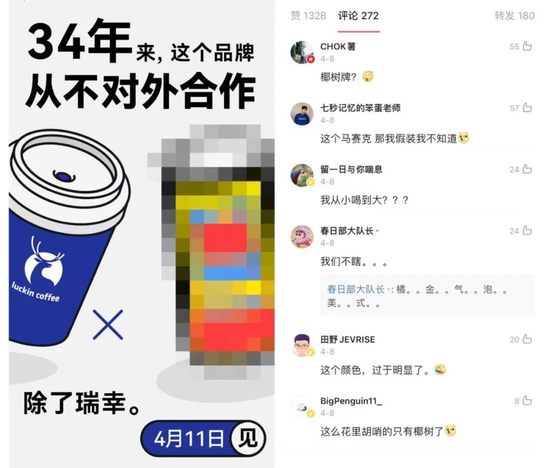 椰树的包装,本身具有天然的话题度,火爆在意料之中,但瑞幸的营销思路也值得关注。