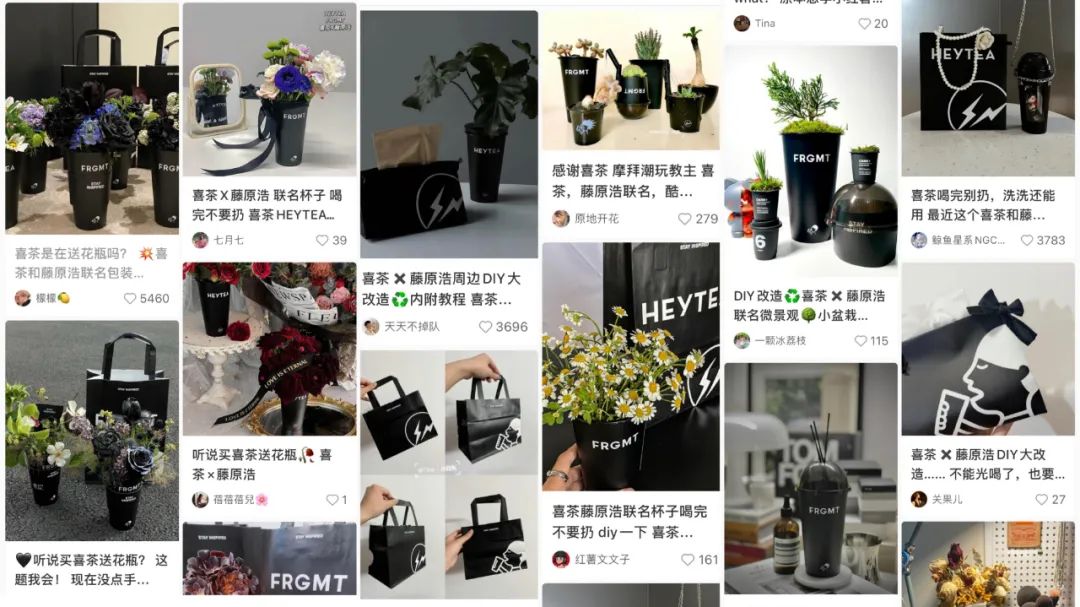 同时,拥有小红书同款盆栽、纸巾盒,也成为顾客消费的理由,二创,正在成为茶饮新的价值点。
