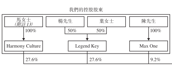 周杰伦多年的商业伙伴——马心婷是该公司的创始人以及执行董事,透过其全资拥有的公司Harmony Culture持股巨星传奇27.63%;