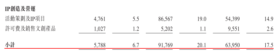 类似的一系列「IP创造及营运」活动为公司带来了一定的收入。