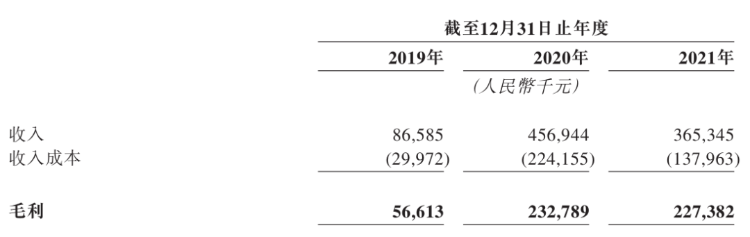 招股书显示,2019年~2021年,巨星传奇收入分别为0.87亿元、4.57亿元和3.65亿元,其中「IP创造及营运」收入分别为0.06亿元,0.92亿元,0.64亿元,分别占到总收入的6.7%,20.1%和17.5%。