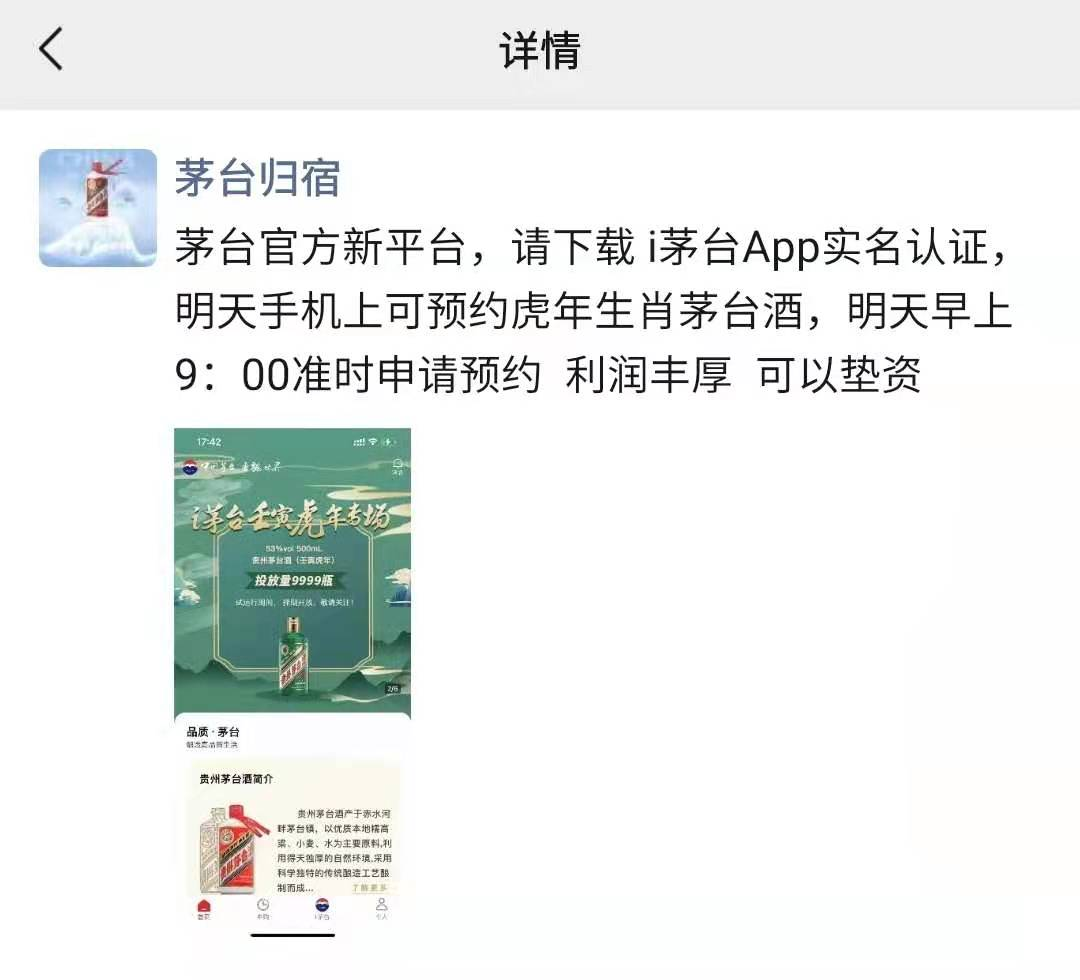 圈子里的职业黄牛,不管是通过自己手机身份信息还是代抢的方式,手里通常都掌握多个账号,少则几十,多则上百。抑制炒作,形同虚设。“茅台归宿”就在朋友圈经常发布代抢消息,“只要你的账号,不用你出钱。我来垫资,抢到一瓶分你500元,抢不到你也没什么损失。”