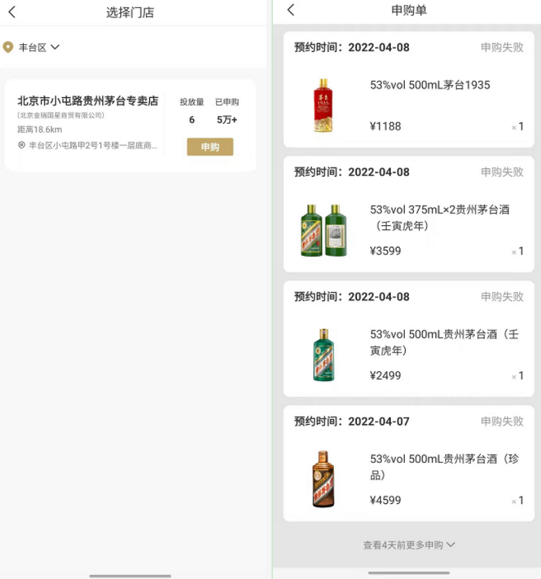 一位茅粉吐槽道:“关键是还买不到,连续一周掐着点申购,天天申购失败,(APP)下了个寂寞。”
