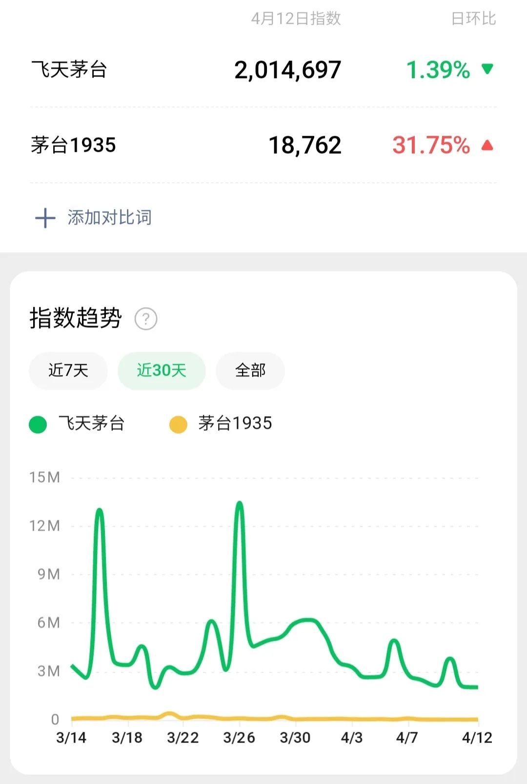 根据微信指数监测,二者的搜索热度相差百倍以上。表现在实际的销售上,财报显示,2021年茅台集团营收首次突破千亿至1060.59亿元,茅台酒营收为934.65亿元,其他系列酒为125.95亿元。
