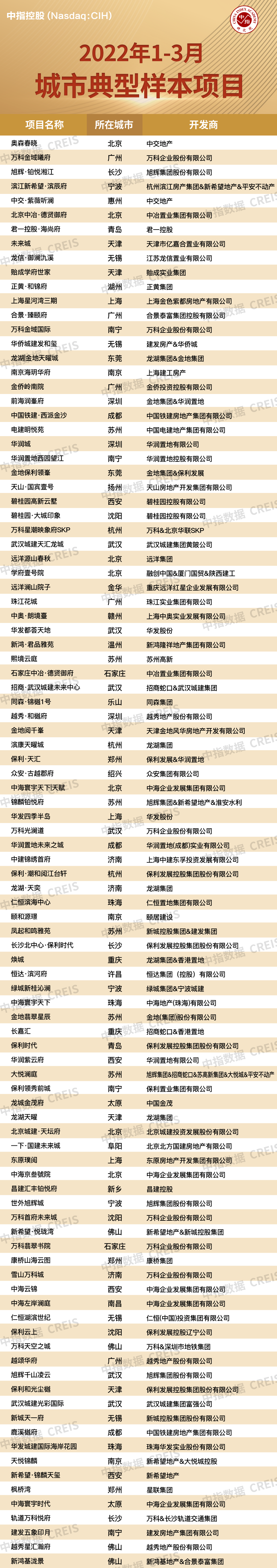 短期来看,房地产市场呈现企稳后的横盘态势;长期来看,房地产行业正处于变革时期,增量市场规模逐渐见顶,曾经高负债、高杠杆、高周转的开发模式难以为继,房企普遍需要转型新模式、提升产品竞争力,以实现高质量发展。在此背景下,中指研究院在中房指数系统理论体系和架构的基础上,从百城价格指数样本项目中选取城市中有较强知名度和广泛影响力的典型样本项目,以“典型性”为基本原则,从销售表现、项目品质、品牌实力等维度出发,对主要城市样本项目进行研究,得出“2022年1-3月城市典型样本项目”,为行业提供标杆典范。