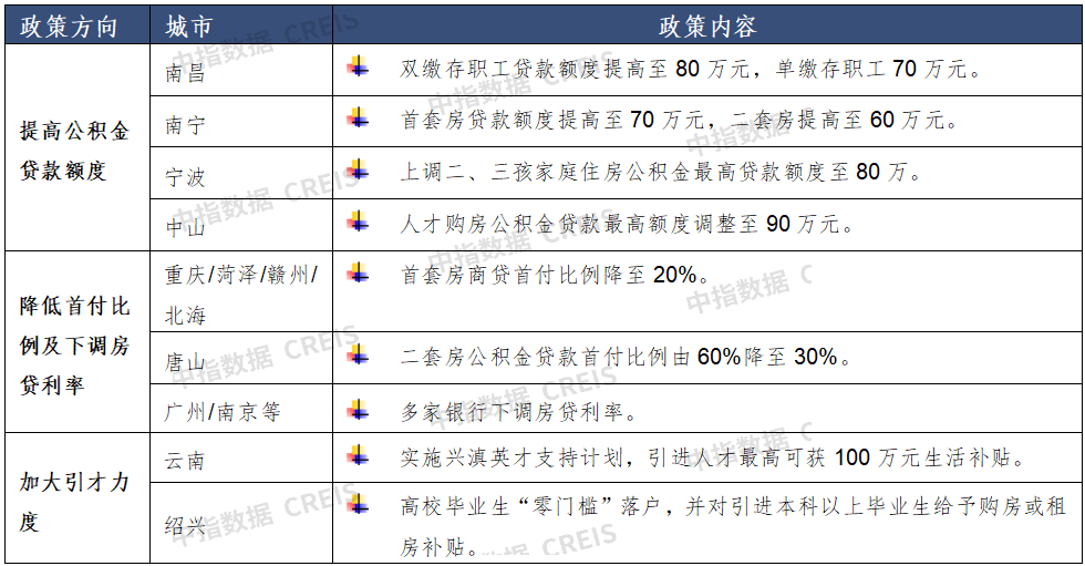 地方层面,各地政府积极落实中央精神,因城施策稳楼市,政策内容包含提高公积金贷款额度、降低首付比例及下调房贷利率、发放居民购房补贴、加大引才力度等。此外,3月郑州发布楼市新政,涉及放松限购、高品质住房限价放松、取消“认房认贷”、施行货币化安置等多个方面,以促进当地房地产业良性循环和健康发展。