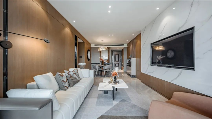 而在样板间设计方面,嘉逸城更是凸显精工品质,地面为仿大理石瓷砖、墙面为定制木质面,整体空间更显简约大气。灵活多变的户型空间,收纳性强,可兼容多重家庭需求。