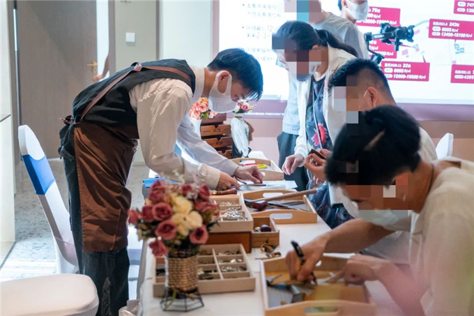 在专业的指导下,来宾们从开料、裁版、打斩、打磨、缝线、封边、抛光…每一个动作都仿佛在与工具、与材料进行诚恳对话,每一道工序,都全身心投入,沉醉其中。这场皮具手作不仅让业主们收获了满满的成就感,也收获了许多城市生活难得的体验。