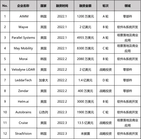 02自动驾驶领域投融资