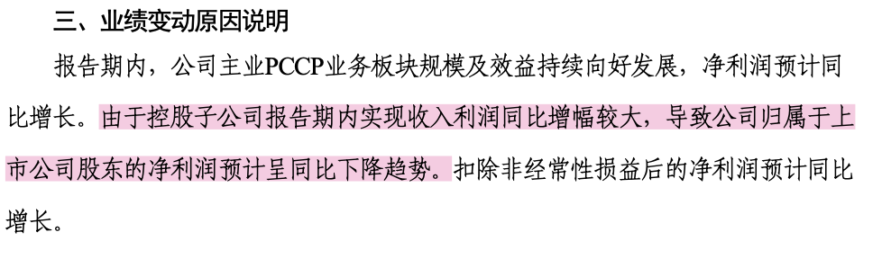也就是说,国统股份去年归母净利润下滑的原因在于部分全资子公司亏损幅度增大。那么,公司在业绩预告中提及的业绩变动的说法,是否有避重就轻、粉饰业绩之嫌?
