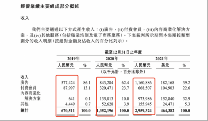 当然,知乎还有一些其他营收来源。比如于2020年推出的职业培训服务,再比如电子商务业务,但这些业务的营收对整个平台来说,起不到决定性的作用。