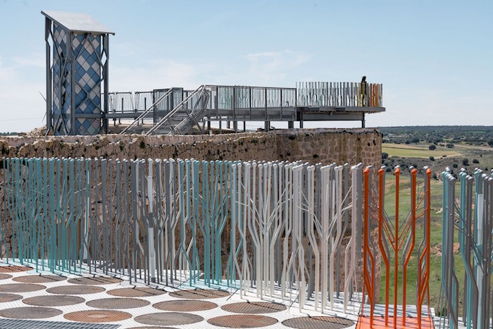 在设计师Izaskun Chinchilla的改造下,这个具有800年历史的古堡,摇身变成了一个色彩丰富、造型时髦的多媒体艺术空间,有供游人散步漫游的灯光广场、可驻足愿望的瞭望高台、一大一小两个露天小剧场、多媒体图书馆、餐厅、咖啡厅等等功能性分区。