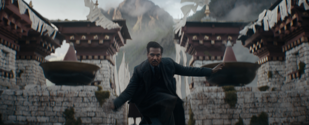 但到了《邓布利多之谜》里,我们发现魔咒对战变得花哨、华丽,但却显得更加“表演性质”,不再试图去遵循或解释世界观,甚至全片几乎没人喊出咒语。比如邓布利多和克雷斯登在街头偶遇大战,电影完全不试图解释两人如何进入了水底倒影的幻境,也不解释默默然造就的破坏如何消除,感觉就像是火影忍者里宇智波鼬和佐助的幻术对战,又像是模仿《奇异博士》里那种扭曲现实的表现方式,但问题是,这些都不是专属于哈利波特魔法世界的感觉,也并没有什么新意可言。