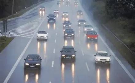 下雨时路面附着力下降,制动距离明显增大,不明情况随时有可能发生,应主动将车速降到安全范围,与前车保持安全距离,切勿车速过快。