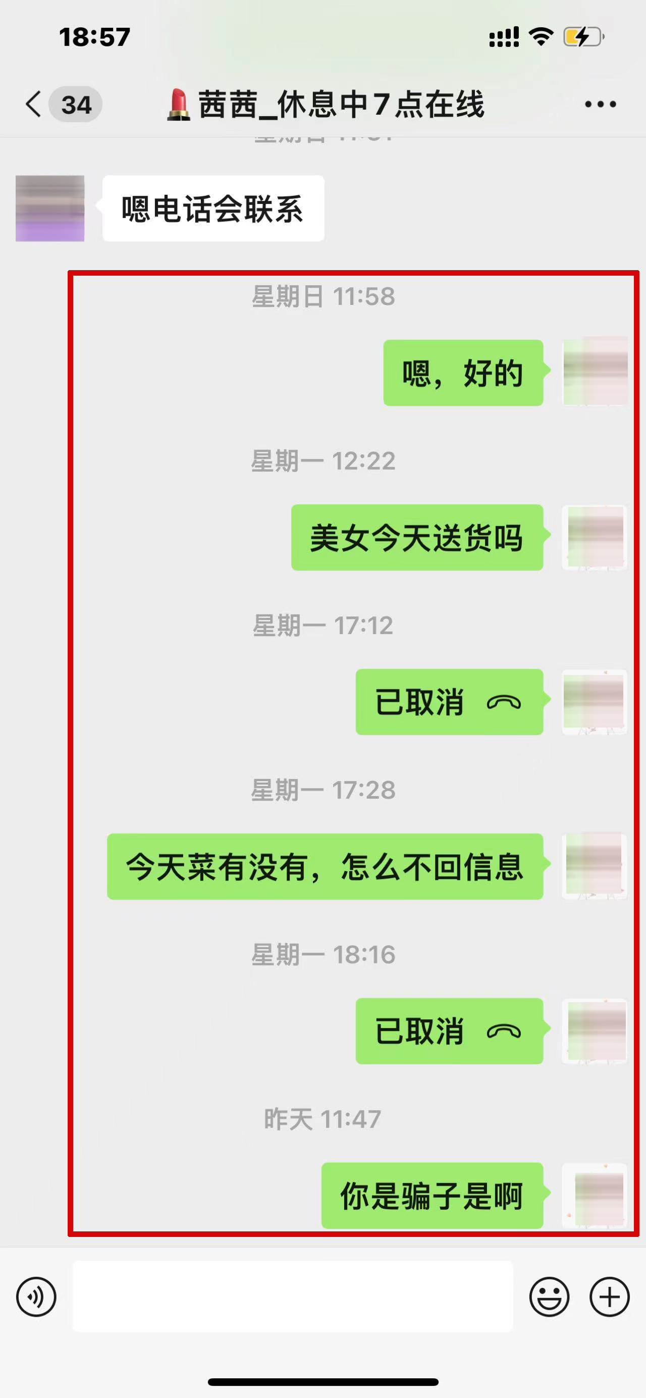 家住闵行的李先生看到信息中提供的食材价格适中,还能保障配送,当即在群内表达了购买意愿,然后根据对方要求互加好友,提供了选购清单并转账180元。而浦东的李小姐和奉贤的姚女士在前一晚就完成了下单,原本承诺次日发货,却迟迟没有收到货物。更让所有人都没想到的是,这个“买菜”群当天突然被解散,也无法再联系上那个所谓的“茜茜”。