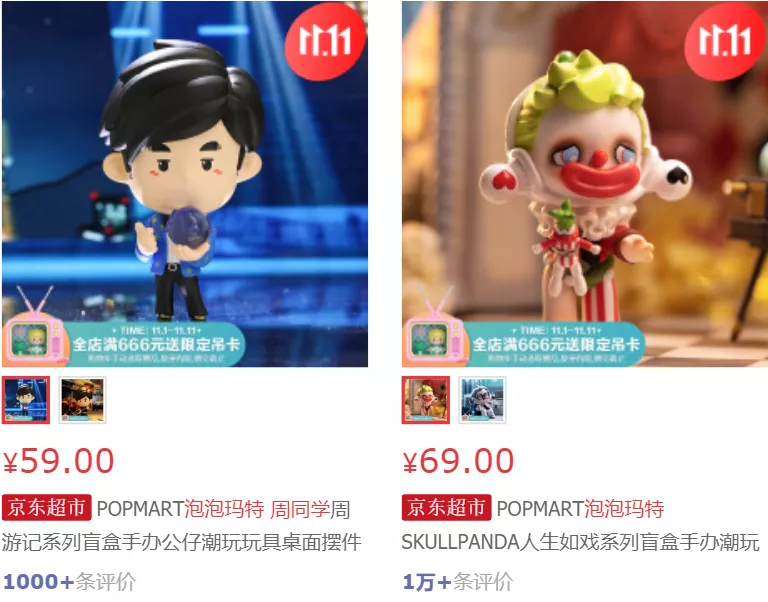 虽然我们没有看到更多基于“周同学”自身的内容,但凭借周杰伦的人气和情怀号召力,周同学已经有了不少商业合作,比如与浦发银行合作的礼盒、与泡泡玛特合作的玩具,巨星传奇也结合周同学销售他们的魔胴防弹咖啡等产品(招股书中称之为“赋能”)。