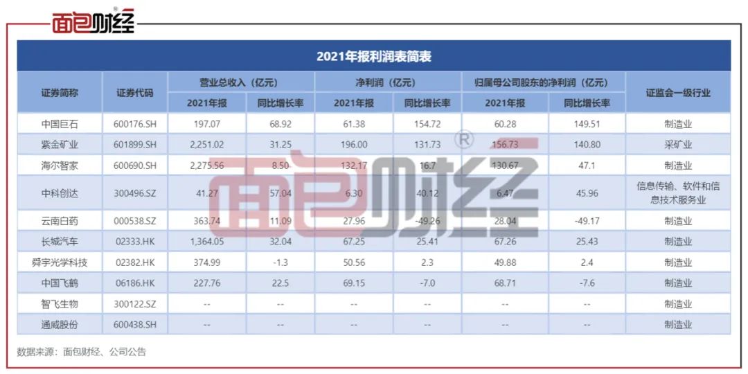 附录:招商蓝筹精选重仓股2021年业绩表现