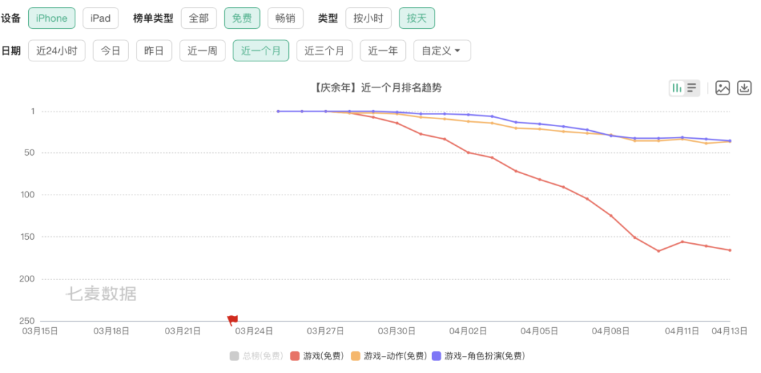 (《庆余年》iPhone免费榜排名趋势)
