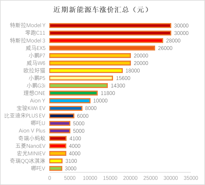 在此影响下,据不完全统计,几乎所有新能源车企,都对旗下产品进行了不同程度的价格上调,涨幅从数千元至几万元不等。