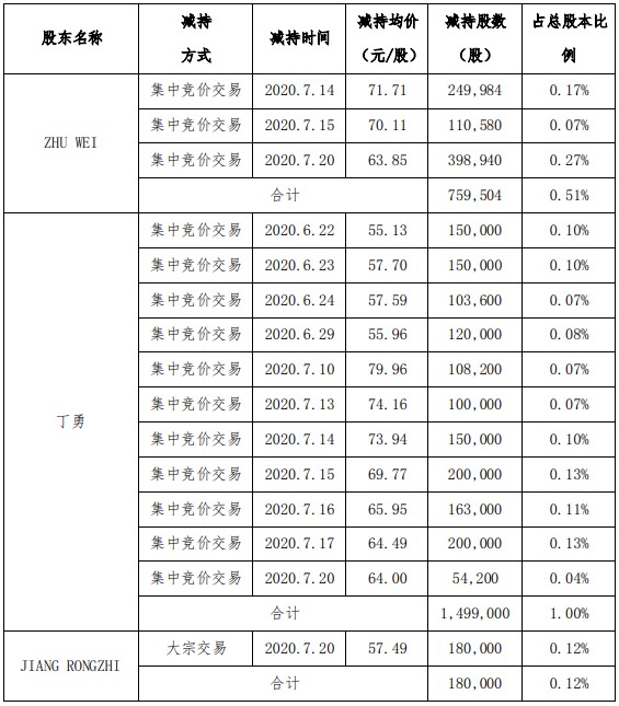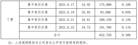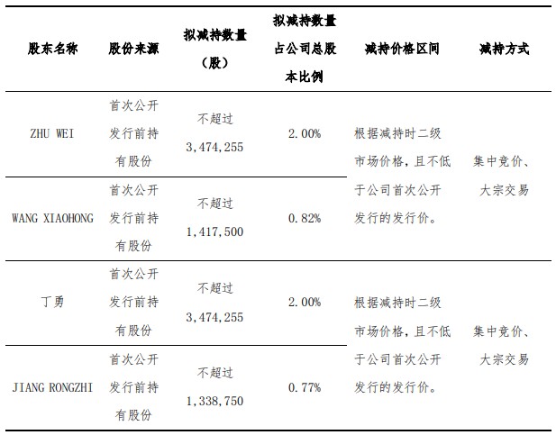 到2021年11月26日减持计划期限届满时,ZHUWEI、WANG XIAO HONG(王晓虹)和JIANG RONG ZHI(江蓉芝) 在减持计划期限届满时未通过任何方式减持公司股份,丁勇本次合计减持了65.28万股,套现2281.93万元。