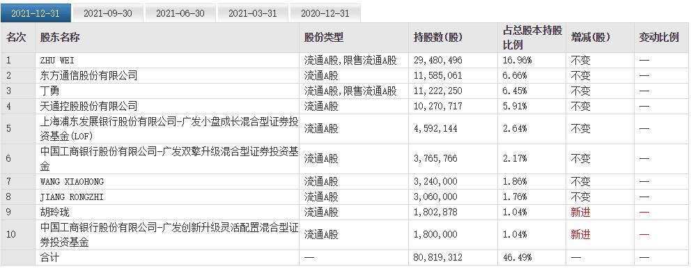 该次减持之前,ZHU WEI(朱伟)持有公司股份3024万股(占公司总股本20.15%),WANG XIAO HONG(王晓虹)持有公司股份324万股(占公司总股本2.16%)。