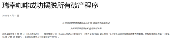 然而就在4月11日,瑞幸咖啡宣布已经顺利完成债务重组,正式结束作为债务人的破产保护程序。