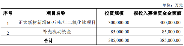4月13日晚坤彩科技公告称,拟定增募资不超过38.50亿元,其中30.00亿元用于全资子公司正太新材料科技有限公司(下称正太新材了)新增60万吨/年的二氧化钛(即钛白粉)项目,8.50亿元用于补充流动资金。