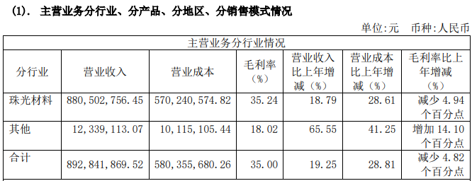 主要产品毛利率创新低