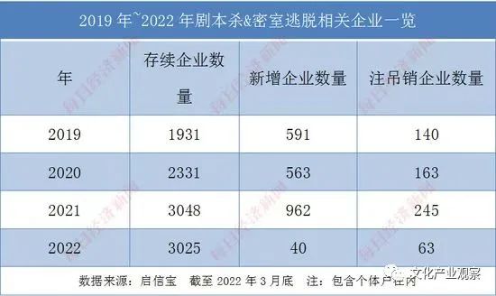 2019年,剧本杀注销企业数量为140家,到了2021年增长至245家,而2022年短短3个月,已经有超过60家企业注销。